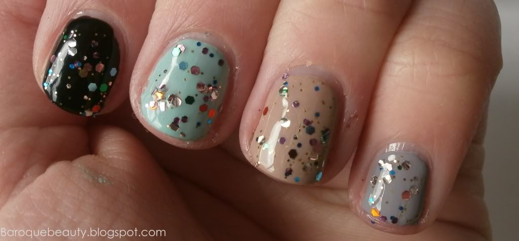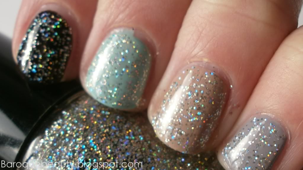 De glitters zijn erg grof en je moet er wel van houden, maar ik vind het toch wel een leuke topcoat. Overigens schijnt 'ie te lijken op een nagellak van Deborah Lippman.