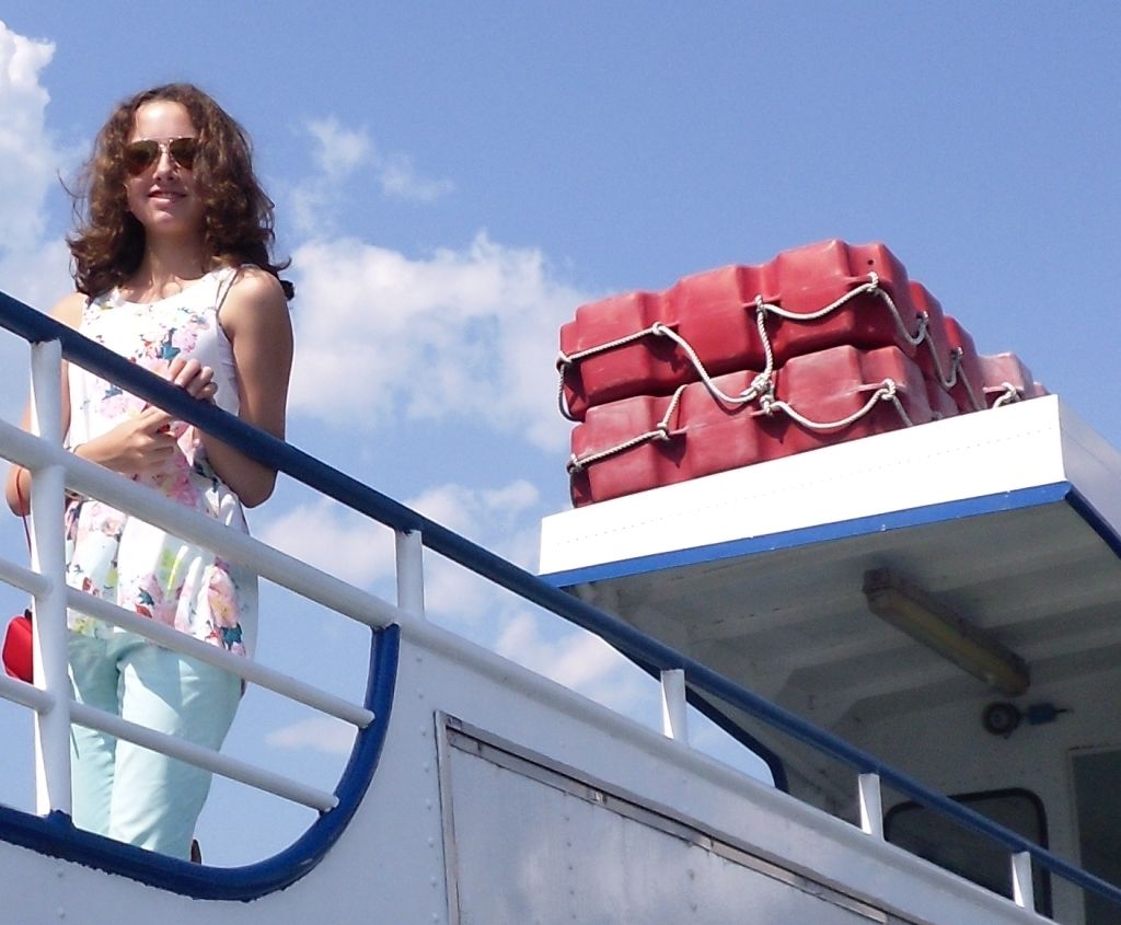 Wachtend op de boot terug. Whoop m'n haar! Komt door de wind, haha.