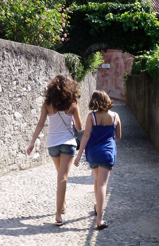 En hier zie je mijn zusje en ik lopend naar Bellagio! Het zijn trouwens niet gewoon gladde trappen, maar met van die ronde steentjes, iehh, pijnlijk.