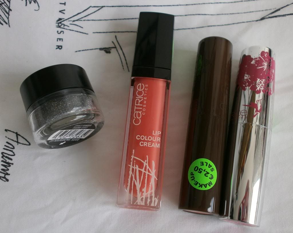 En dan, dames en heren... *tromgeroffel* de geweldige kortingsbakken! De drie Catrice lipproducten wilde ik eigenlijk al kopen toen ze nog in een limited edition zaten, maar nu heb ik ze dus voor €2,50 per stuk gescoord, yay! De Effect Powders van Gosh had ik nog nooit geprobeerd, maar Holographic vond ik wel erg mooi. Hmm, misschien dat ik dus nog wel wat andere kleurtjes ga halen.. HO STOP! Ik moet dringend een no-buy invoeren. Ik heb in m'n agenda gezet dat 'ie twee weken duurt, maar voor mijn part mag het best wat langer als dat me lukt.