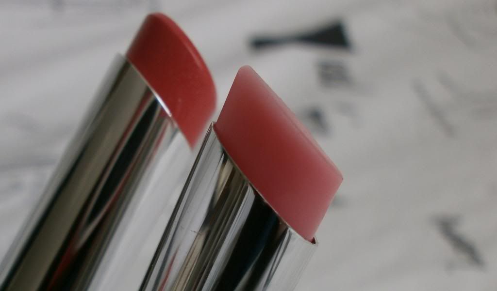 De Catrice lipsticks. Pretty! De oranje is van de Cucuba LE en dekt redelijk goed, maar de roze is van de Coolibri LE en is juist meer een getinte lipbalsem. Die laatste draag ik nu al een paar weken iedere dag naar school, geen geplak, maar wel een mooi lichtroze glansje.
