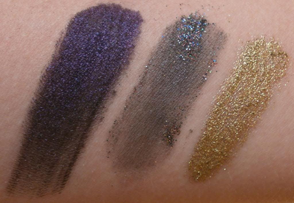 Er is nog één andere pigment in de collectie: een shimmery donkergrijze. 02 en 04 zijn toch meer glitters, en dat kun je zien bij de swatches.